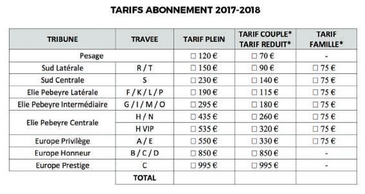 A ceux qui se poseraient la question : les tarifs sont identiques à la saison 2016/2017.