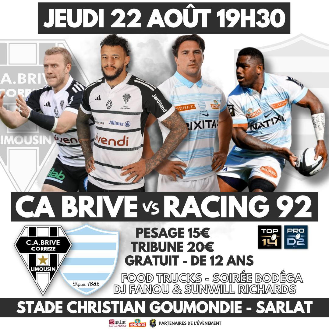 Voici les équipes de Brive et du Racing 92 pour cette rencontre amicale :