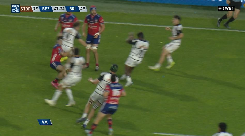 Le match était sans enjeu pour les deux équipes. Mais il fallait le jouer. Du côté de Brive, le staff avait décidé de faire tourner et de ménager ses cadres. L'équipe "alternative" a résisté le plus longtemps possible mais l'indiscipline a coûté cher. Maxime Sidobre a connu une entame de seconde période compliquée. Après avoir reçu un carton jaune pour une faute cynique qui entraine un essai de pénalité, le demi de mêlée écope d'un carton rouge direct pour avoir percuté un biterrois après son coup de pied.