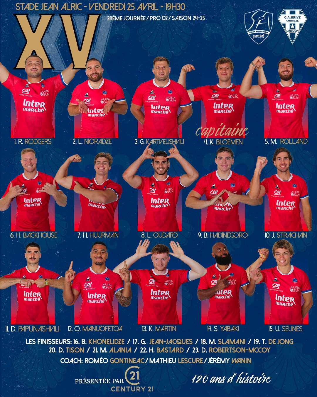 Voici le XV de départ d'Aurillac pour la réception de Brive :