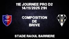 Voici la composition des deux équipes pour le match Béziers - Brive (coup d'envoi à 21h, arbitre : Mr Thibault Santamaria)
