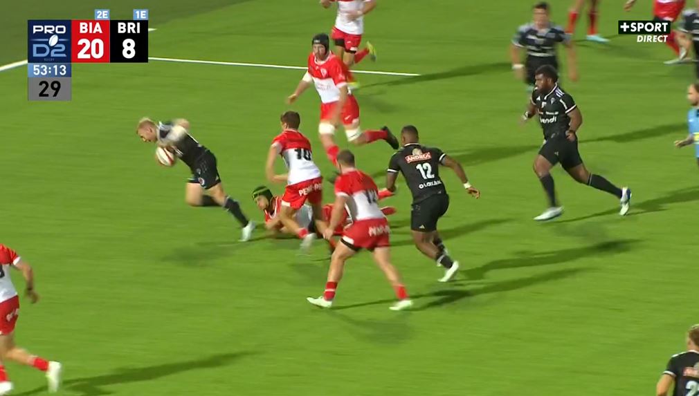 Toujours pas de jeu pétillant. Dans beaucoup d'interviews de l'intersaison, on nous avait annoncé le changement de philosophie offensive de l'équipe avec un jeu plus aéré, avec plus de volume de jeu ... Mais à l'image de ce début de saison, ce jeu est totalement absent. Pire encore, Brive reprend son jeu traditionnel de jeu axial depuis deux matchs. Mais face à Biarritz, Brive s'est enfermé dans ce jeu dès les premières minutes et cela lui a coûté cher. Pendant plus de cinq minutes, les brivistes veulent absolument marquer en force et insistent sur les pénaltouches et les mauls. Ils vont provoquer un carton jaune pour Biarritz mais même en supériorité numérique, ils ne parviendront pas à aplatir. Franchir la ligne si mais aplatir non. Forcément, cela aurait changé la physionomie de la rencontre de marquer très tôt mais cela a, au contraire, donné plus de coeur à Biarritz qui a plié sans rompre. Sans avoir les idées claires pour savoir comment jouer, Brive doit au contraire se rassurer et prendre les points quand ils se présentent. Pour le moment, le changement de jeu est toujours au point mort et sans vraiment l'apparition d'un début de quelque chose.