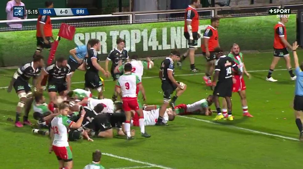 L'entame de match. Le scénario du match aurait pu être bien différent si l'essai de Mathis Ferté avait été valable. Mais ce début de match est clairement en faveur de Biarritz. Une équipe qui joue, avec des avants qui gagnent ses duels et une défense qui prend le dessus sur l'attaque adverse. Brive enchaine les fautes (7 en 1/4 d'heure) et ne trouve pas la solution. Biarritz enchaine d'abord les pénalités et marque ensuite un essai sur un ballon porté. L'essai rappelle étrangement celui encaissé à Oyonnax, avec un alignement qui se fait surprendre par la combinaison biarrote. Après la rencontre, Pierre-Henry Broncan avouera que même mené 13-0, il n'avait pas douté et savait que l'équipe réagirait. Disons que heureusement qu'elle marque rapidement derrière car si l'essai tarde à arriver, qui sait ce qui aurait pu arriver au scénario de la rencontre.