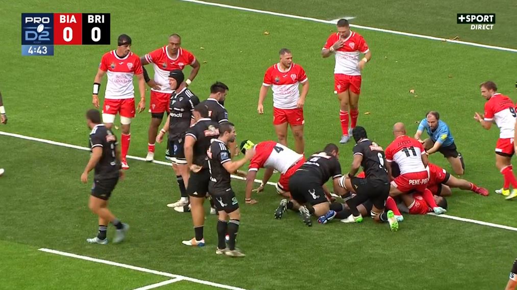 Les conditions sont estivales dans le Sud-Ouest en ce vendredi. On va espérer que cela n'impacte pas trop la qualité et le rythme de la rencontre. Biarritz allume la première mèche avec Yann Lesgourgues qui joue au pied. Taniela Sadrugu assure la sortie du ballon en ballon mort (1'). On revient donc à l'endroit où a eu lieu le coup de pied et la mêlée briviste prend le dessus. Au lieu de prendre les points, on décide d'aller en touche à Brive. On est alors parti sur une succession de mauls, de fautes et de pénaltouches. Brive se sent fort et insiste dans ce secteur. Lucas Da Silva marque l'essai mais c'est refusé à cause d'un écran d'Etonaia Bainivalu. Nouvelle faute biarrote et c'est le carton jaune pour Jessy Jegerlehner (5'). En supériorité numérique, Brive insiste de plus belle devant. Mais à force de répéter le même schéma de jeu, Brive va finir par se faire contrer et de perdre le lancer en touche, permettant à Biarritz de se donner un peu d'air (7').