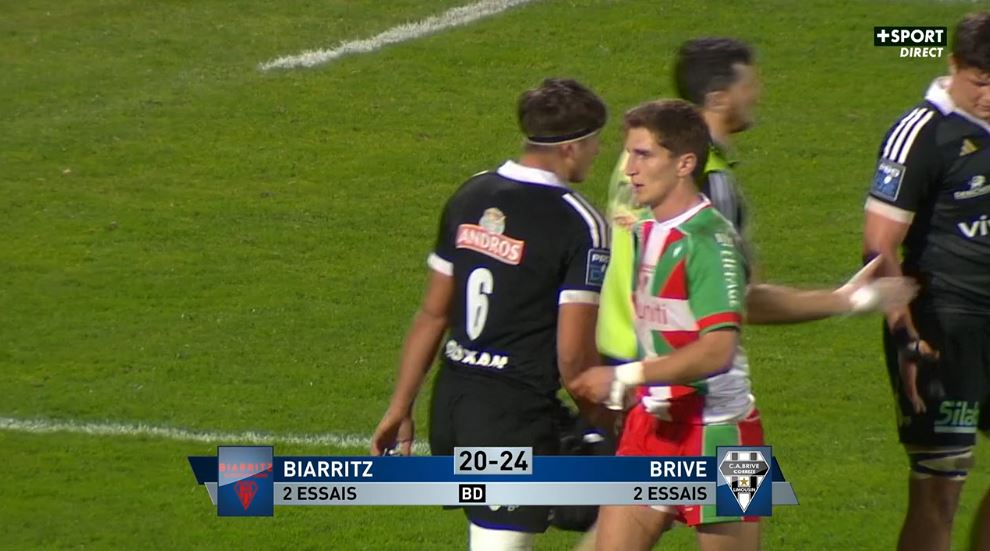 En plus de son manque de réalisme, Biarritz se montre maladroit, à la fois en touche mais aussi dans le jeu. Même si elle arrive à se faire déborder, la défense briviste provoque les pertes de balle à partir du moment que la ligne se forme. Brive n'a plus encaissé de points depuis la 17e minute et ce mur défensif rapproche toujours un peu plus le CAB d'une troisième victoire à l'extérieur lors de cette saison. Si Biarritz parvient à marquer, cela pourrait relancer l'intérêt de la fin de match. Dolhagaray accélère dans un surnombre au large et pense prendre le trou mais c'était sans compter sur le retour de Samuel Maximin qui referme la porte (71'). Les minutes s'écoulent et les chances de victoire pour Biarritz commencent à se réduire. Le bonus défensif est toujours possible. Les basques insistent dans les 22 mètres brivistes. Encore 5 mètres à faire mais à nouveau, après avoir plié mais sans rompre, la défense du CAB gratte le ballon (76'). L'espoir renait cependant quand Kibirige réussit un festival sur son aile, cassant plusieurs plaquages et mettant à la faute Brive. Anoa Laurent joue rapidement la pénalité et semble aplatir sur la ligne. Nathan Fraissenon prend un carton jaune mais la vidéo est appelée. Elle tourne en faveur des brivistes en signalant la faute de Kibirige qui ne relâche pas le ballon alors qu'il était au sol. Pas essai pour Biarritz et pas de carton pour Fraissenon (77'). Mais à force d'insister, Biarritz va être récompensé. Trop tard cependant pour aller chercher la victoire. Encore lui, Kibirige continue de faire des misères dans la défense briviste. Biarritz n'est plus qu'à 5 mètres et la défense se concentre dans l'axe. Cela laisse alors des espaces au large. Le ballon arrive sur l'aile où se trouve Morgan qui a un boulevard pour aplatir en coin. En coin, Dolhagaray passe la transformation qui offre le bonus défensif à Biarritz. Maigre consolation pour les locaux qui laissent la victoire dans les mains brivistes. Brive repart du Pays Basque avec une 3e victoire à l'extérieur lors de cette saison.