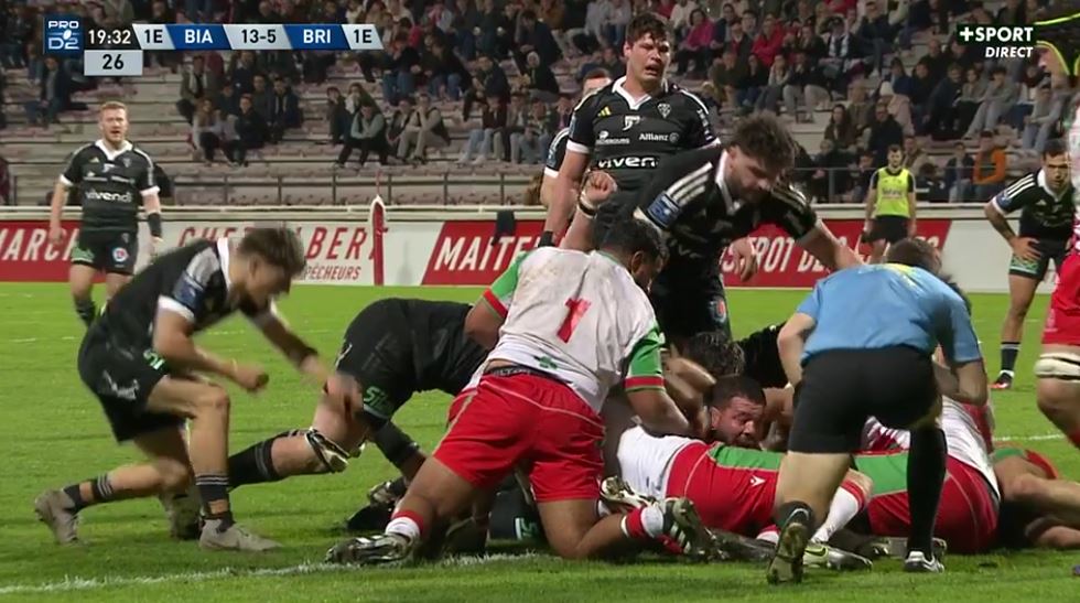 La deuxième période commence tactique. On part sur un jeu d'occupation avec les deux équipes qui cherchent à s'installer dans le camp adverse. A ce petit jeu, Biarritz en sort vainqueur avec la faute de main de Bosch dans ses propres 22 mètres. Les biarrots cherchent à profiter de cette occasion pour revenir dans la rencontre. L'en-but se rapproche mais l'ancien de la maison Asier Usarraga vient gratter le ballon (44'). Victime d'un plaquage haut, Mathis Ferté doit aller passer un protocole commotion (46'). Alors que les deux équipes sont désormais de retour à 15, Biarritz est à nouveau sanctionné, Bosch ajoutant trois points supplémentaires (13-17, 50'). Biarritz a des intentions mais laisse trop de points en route. A l'image de cette pénalité à 15 mètres, face aux perches, totalement manquée par Kylian Jaminet (55'). Si d'un côté, on se montre inefficace, de l'autre côté, on est réaliste. Rahboni Warren-Vosayaco obtient une pénalité au sol. Brive se rapproche de l'en-but avec une touche. Les avants prennent le contrôle de la situation. Le pilonnage est en cours et c'est Francisco Coria Marchetti qui passe la ligne (13-24, 59').