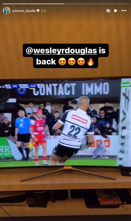 Esteban Abadie, au repos ce week-end et exempté du déplacement à La Rochelle, a apprécié le spectacle et notamment l'essai de son ancien coéquipier Wesley Douglas.