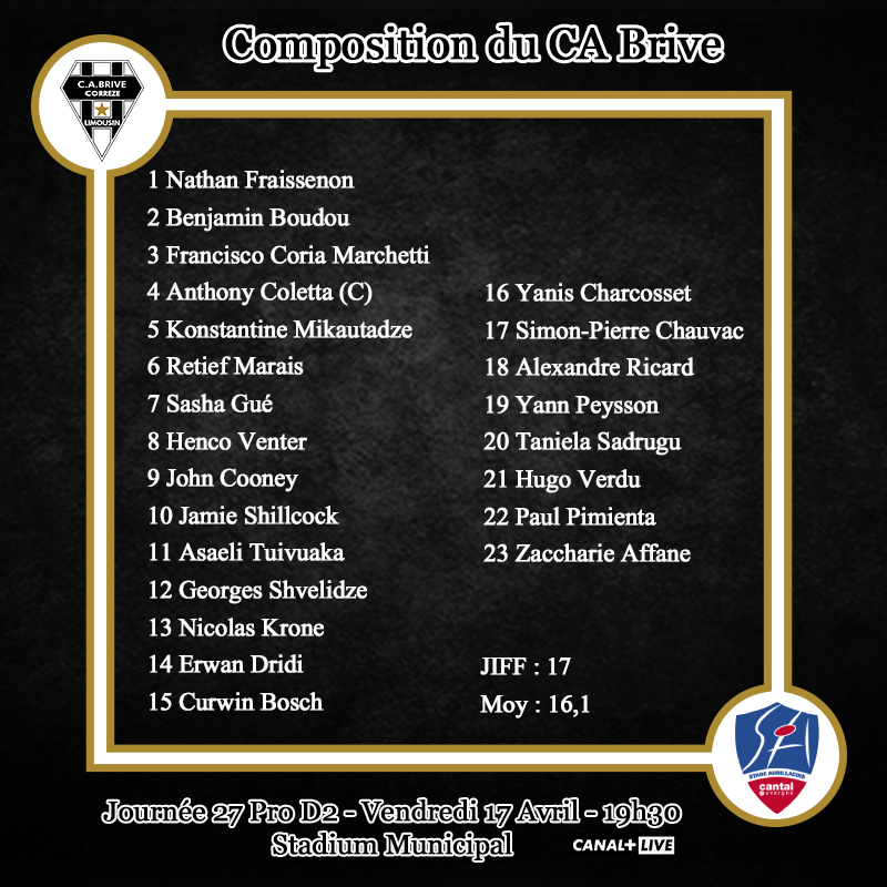 La position dans le top 6 va jouer jusqu'à la fin avec possiblement peu de points d'écart entre les équipes à la lutte. Brive est dans cette lutte et après la coup d'arrêt à Oyonnax, le CAB doit repartir de l'avant face à Aurillac. L'équipe n'a pas le droit à l'erreur et doit chercher à prendre le maximum de points dans ce derby.