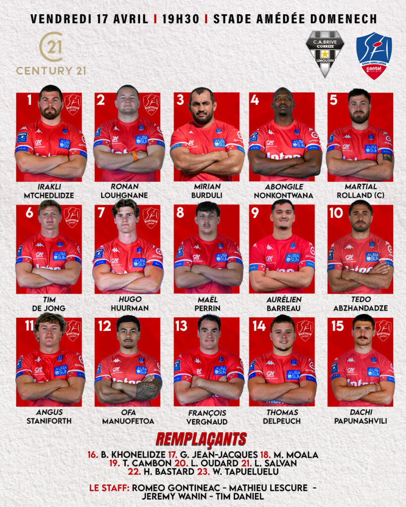 Voici le XV de départ d'Aurillac pour le déplacement à Brive :