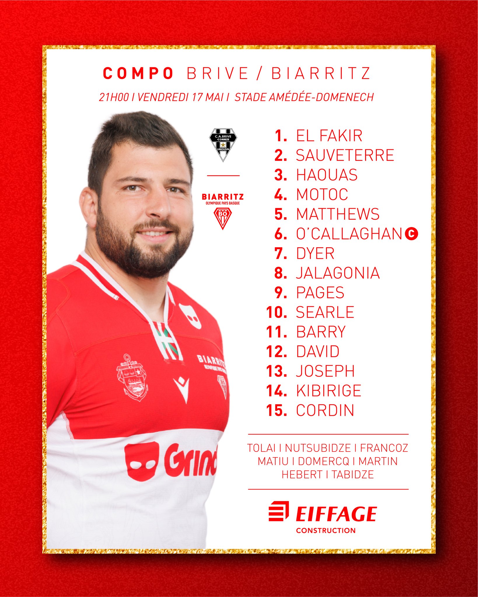 Voici le XV de départ de Biarritz pour le déplacement à Brive :