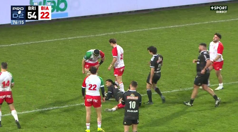 Biarritz est venu pour jouer et Yann Lesgourgues met pas mal de rythme depuis son entrée. L'en-but briviste se rapproche mais le ballon est gratté à 5 mètres et Shillcock peut dégager son camp. Dans l'autre moitié de terrain, la défense souffre et enchaine les fautes. C'est trop et c'est Millian Ouldji qui paye pour l'ensemble de l'oeuvre collective (66'). On veut y aller encore en force mais Etonia Bainivalu est stoppé sur la ligne sans pouvoir aplatir. C'est finalemetn au large que la faille va être trouvée. Anthony Coletta passe sur le pas pour Vakhtang Abdaladze. A l'entrée des 22 mètres, il accélère et échappe à un plaquage avant de crocheter Selponi pour s'offrir son propre essai (54-22, 69').