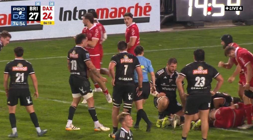A égalité, Dax est devant. Mais qu'est ce qu'ont toutes ces équipes à jouer tous les ballons et à les déplacer dans toute la largeur du terrain ? A croire qu'elles veulent faire souffrir le CAB ! Plus sérieusement, Dax était venu pour jouer et a joué. Parfois, cela a été du bazar désorganisé et cela a été payé cash en première période avec l'essai de Bosch. Mais quand cela a voulu sourire, les essais sont arrivés notamment avec Naseara et Gatelier. Si on prend la grande partie de chaque période qui a notamment été passé à 15 contre 15, c'est bien Dax qui mène 24 à 13. Sans oublier une pénalité face aux perches manquée. Brive a eu du mal à trouver le bon rythme pour freiner le rythme dacquois mais il a surtout souffert au niveau de sa couverture du terrain pour empêcher le jeu au pied derrière la ligne de défense. Cela a été réalisé à de nombreuses reprises et Dax en a profité pour jouer profondément dans le camp briviste. Si on oublie un peu ces dernières minutes dingues qui n'arrivent pas à tous les matchs, on peut se dire que Brive a eu un peu chaud et que la pièce est tombée du bon côté pour le CAB.