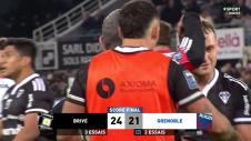 Les deux équipes se livrent un gros combat. Il y a de l'envie mais aussi des imprécisions. Si Grenoble ouvre le score, Brive va répliquer avec deux essais par Benjamin Boudou et Asaeli Tuivuaka. Grenoble ne veut pas se laisser détacher et réagit avec Hugo Trouilloud. Pour le moment, sur les bancs, on fait le bilan de ce début de partie.