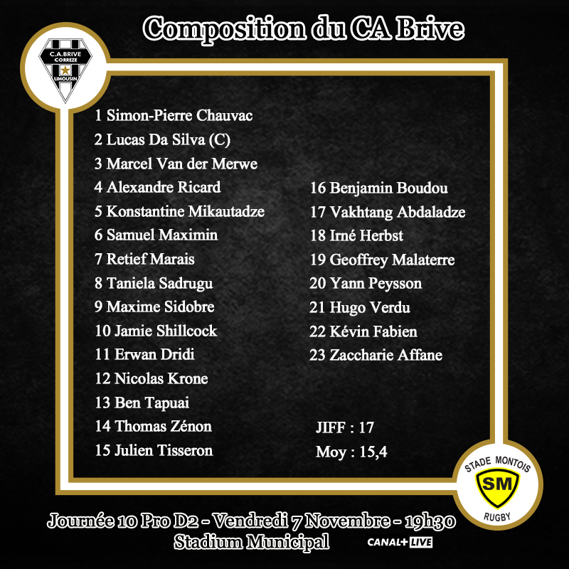 — CA Brive Rugby (@CABCLRUGBY) November 7, 2025