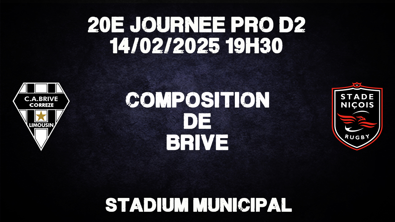 Pour cette réception, Brive fait tourner et laisse plusieurs cadres au repos. On change la première ligne avec les titularisations de Simon-Pierre Chauvac, Issam Hamel et Henzo Kiteau. Sitaleki Timani débute en 2e ligne et avec le brassard de capitaine. Nouvelle 3e ligne avec Sasha Gué, Samuel Maximin et Loan Lavergne. Tom Raffy débute à l'ouverture. Tevita Railevu est titulaire à l'aile. A noter le retour de blessure de Stuart Olding qui débute sur le banc.