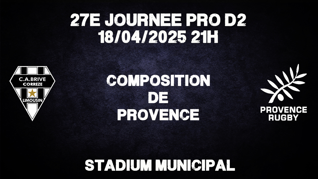 La saison dernière, Provence était dans une lutte à 3 pour se classer parmi les deux premiers de la saison régulière et le club avait terminé à la première place. Même si cela s'était mal passé en demi-finale face à Grenoble, l'équipe est repartie au combat et continue de jouer les premiers rôles et espère pouvoir accomplir son rêve : découvrir le Top 14. Derrière le leader grenoblois, la 2e place est en jeu et ce choc de la 27e journée va être décisif. Brive a l'avantage sur Provence et possède 4 points d'avance. Provence connait donc la marche à suivre pour reprendre la main : gagner sans laisser de bonus au CAB. Mais il va falloir être très solide pour venir s'imposer en Corrèze. En tout cas, les joueurs sont prêts pour cette rencontre qui ressemble bien à un match de phase finale, comme un quart de finale.