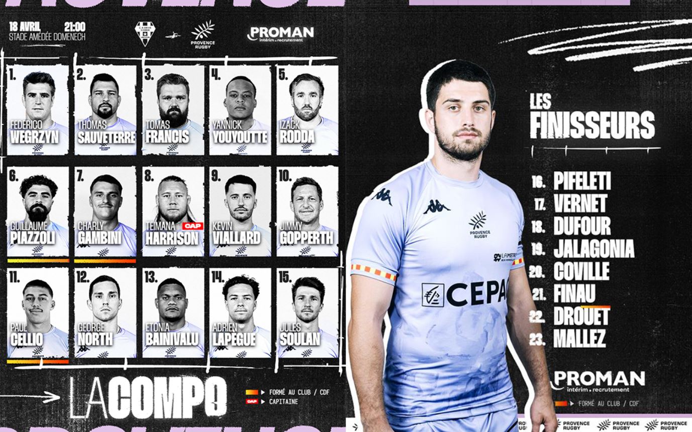 Voici le XV de départ de Provence pour le déplacement à Brive :