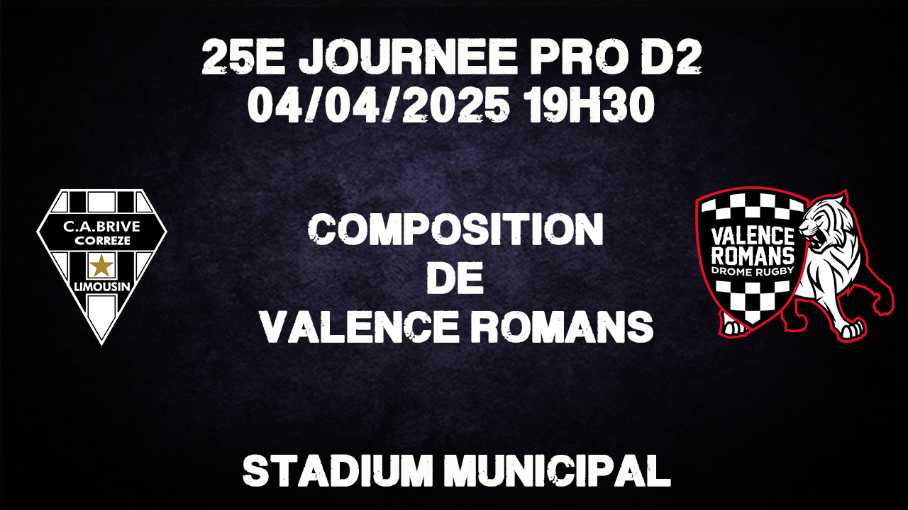Voici le XV de départ de Valence-Romans pour le déplacement à Brive :
