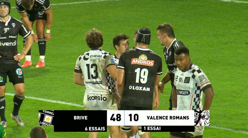 Alors que Valence-Romans était au contact à quelques minutes de la pause, l'équipe se tire une balle dans le pied avec son indiscipline. Brive n'en demandait pas tant et fructifie les arrêts de jeu de la première période. Le CAB rentre avec de l'avance à la pause, de quoi jouer plus libérer en 2e période.