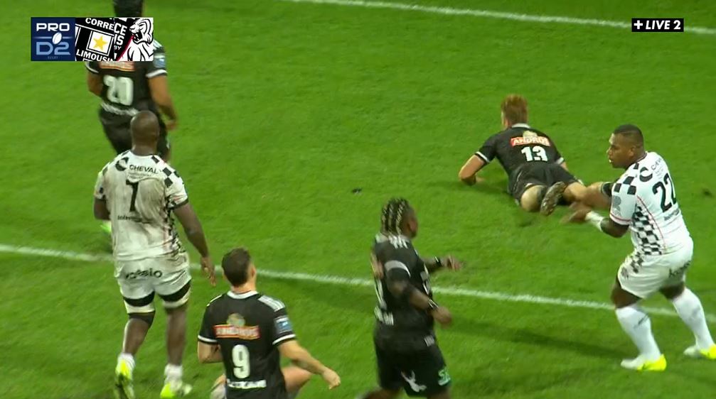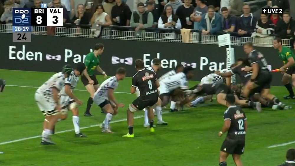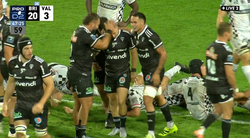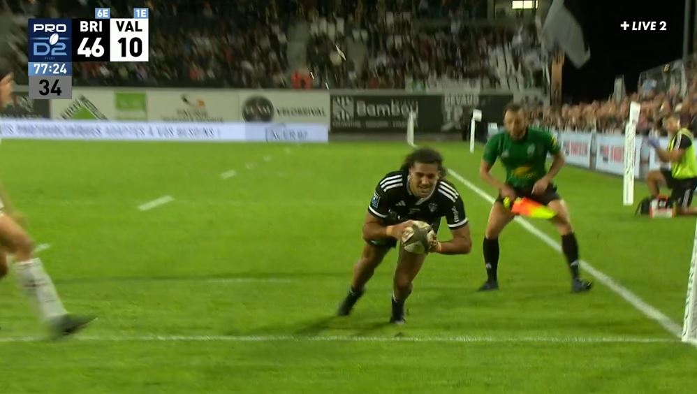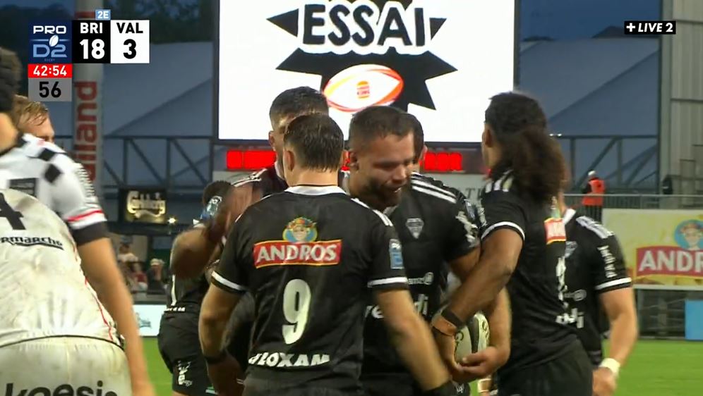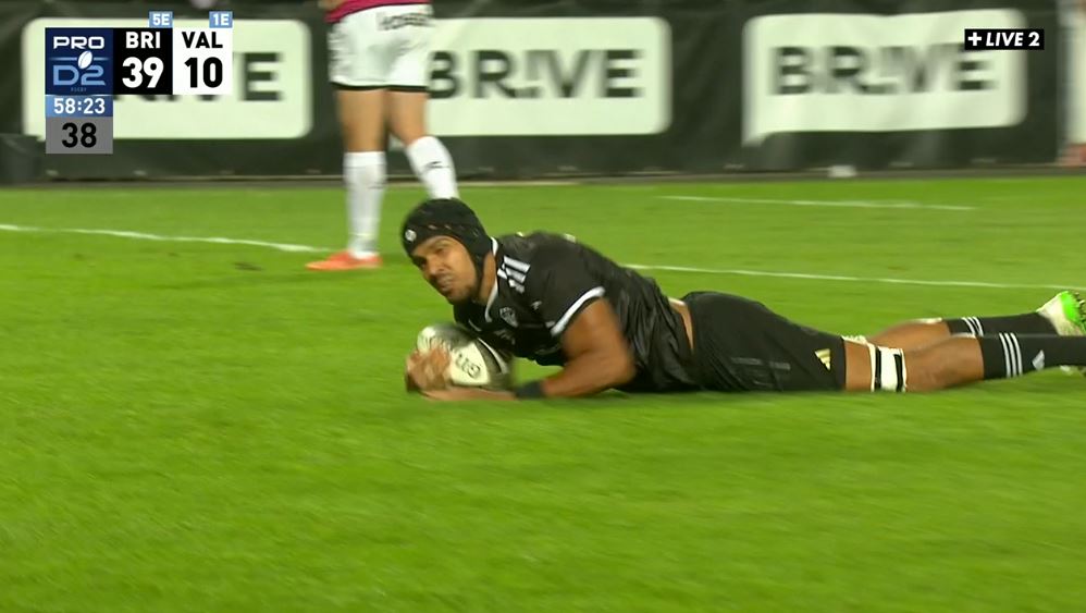 Les malheurs de Valence-Romans ne vont pas s'arrêter là. Sur une attaque au centre du terrain, légèrement dans le camp briviste, Loan Réal se fait arracher le ballon par Samuel Maximin. Le 3e ligne du CAB part tout droit et personne ne va le revoir pendant plus de 50 mètres (41-10, 60').