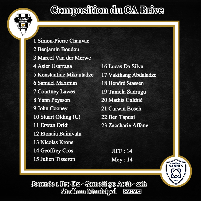 Voici le XV de départ du CA Brive pour la réception de Vannes :