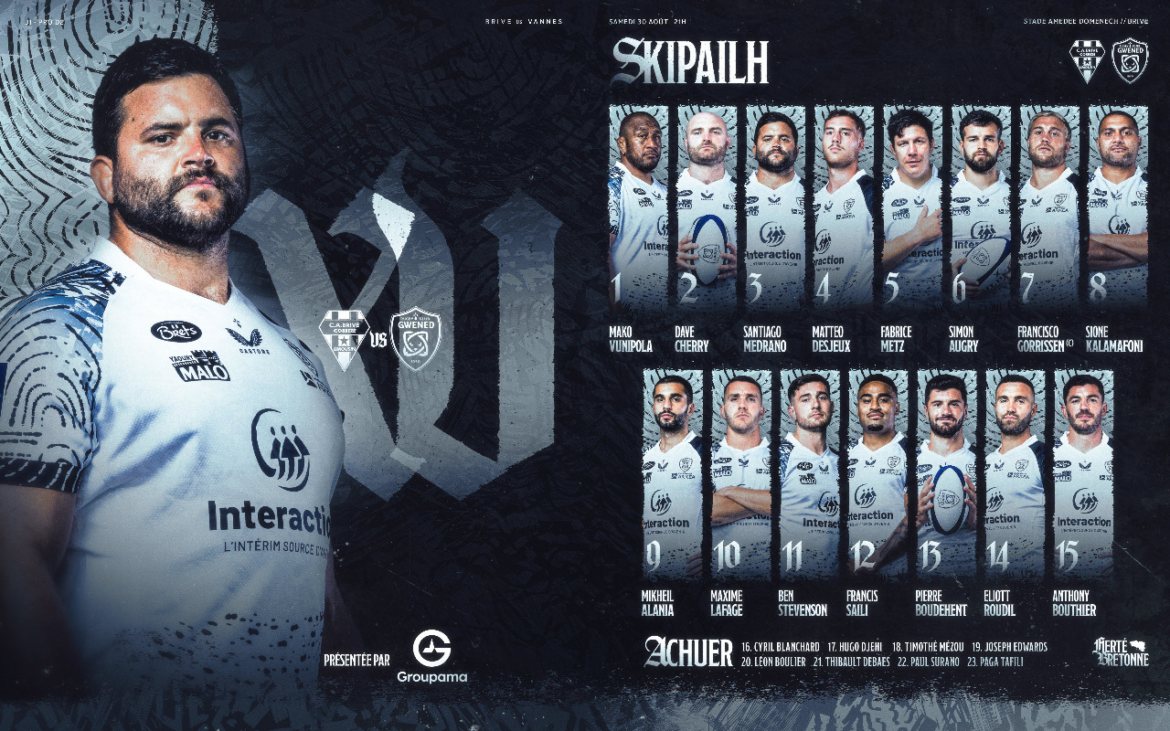 Voici le XV de départ de Vannes pour le déplacement à Brive :