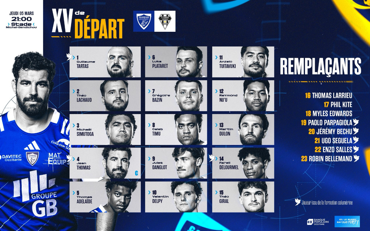 Voici le XV de départ de Colomiers pour la réception de Brive :