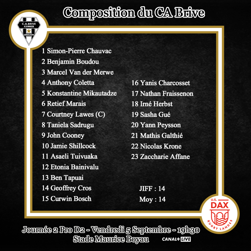 La Pro D2 enchaine avec la deuxième journée. Désormais, on inverse les rôles. Pour certains, cela sera la première à la maison et pour d'autres la première en déplacement. Après avoir sauvé deux points à la maison, Brive se rend à Dax avec l'idée de continuer de prendre des points et surtout éviter le même calvaire des deux dernières saisons.