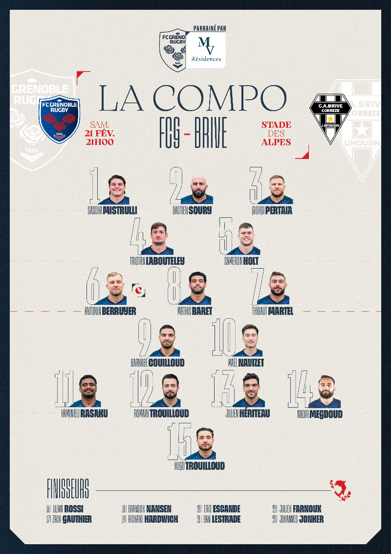 Voici le XV de départ de Grenoble pour la réception de Brive :