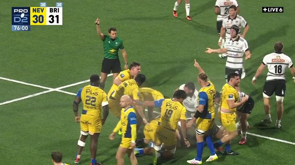 Une conquête qui craque. Tout allait bien et puis, petit à petit, tout s'est déréglé. On pourrait évoquer l'arbitrage de Mr Urruzmendi qui continue à ne pas être dans les petits papiers brivistes. Mais au final, ce n'est pas lui qui perd les ballons en touche, qui se fait gratter les ballons dans les mauls, qui souffre en mêlée ... C'est vrai qu'il y aurait pu avoir quelques décisions arbitrales en faveur de Brive mais Brive perd aussi le match tout seul. Si Brive marque 3 essais en un peu plus de 10 minutes, il reste muet pendant une heure derrière. Visuellement, les deux premières lignes ont eu un impact diamétralement opposé dans la rencontre. La conquête a plombé l'équipe dans les derniers instants du match avec une touche qui continue de perdre des ballons dans la zone de marque et surtout une mêlée qui passe de dominatrice à dominée. C'est d'ailleurs sur une mêlée que Nevers obtient la pénalité de la gagne. La dernière action illustre aussi la baisse de régime et d'impact du CAB : la première ligne charge mais ne fait pas vraiment reculer la défense. Une défense qui était prête à cette charge, vient gratter, le soutien offensif est en retard et la pénalité est donnée à Nevers.