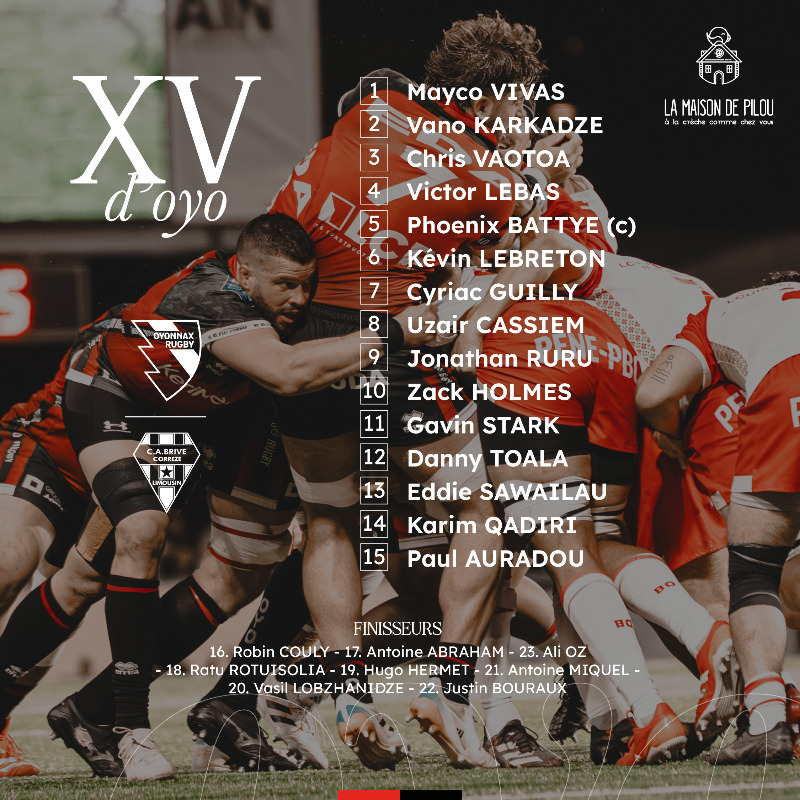 Voici le XV de départ d'Oyonnax pour la réception de Brive :
