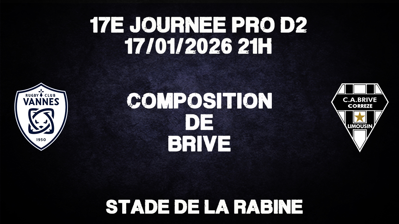 Pour revenir à un niveau qui lui correspond, Brive sait qu'il doit faire des résultats à l'extérieur. Si le CAB est à l'aise à domicile, ce n'est pas forcément le cas en déplacement. Ce prochain match va permettre de jauger cette équipe. Vannes attend Brive pour le choc de cette 17e journée.