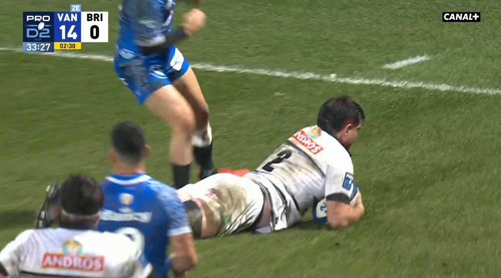 Brive : 1 essai de Charcosset (35') ; 1 transformation de Keletaona ; 3 cartons jaunes de Herbst (20'), Verdu (60') et Zénon (76')