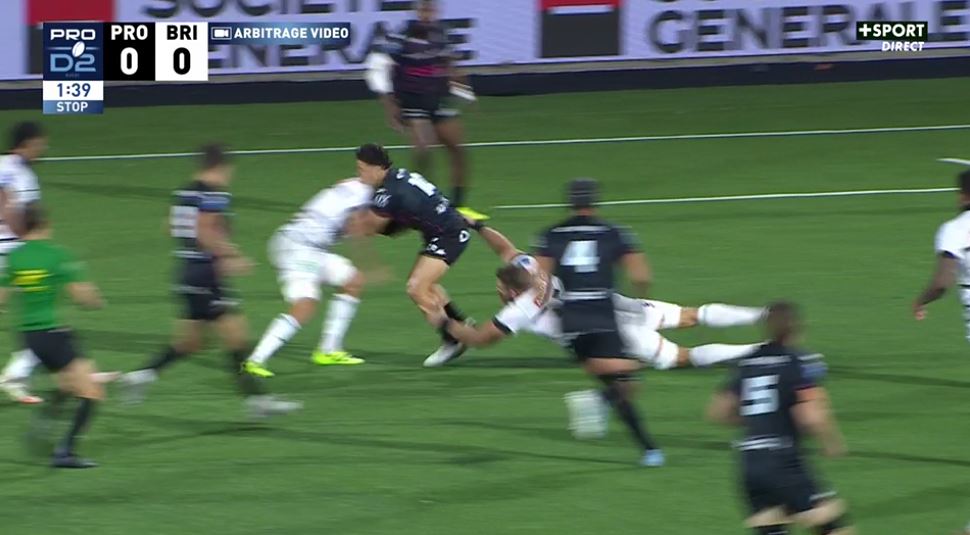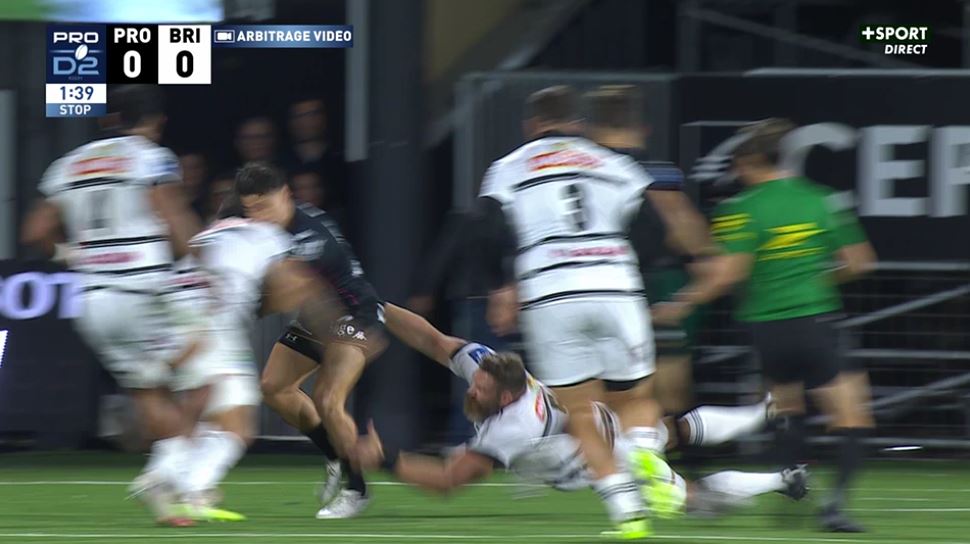 Après deux défaites à Agen et surtout à domicile contre Soyaux-Angoulême, Brive se retrouvait dans une situation compliquée au moment de se rendre à Provence. Le match ne pouvait pas plus mal commencer. 99 secondes de jeu et déjà un appel à la vidéo. Caleb Muntz attaque la ligne dans ses 22 mètres, résiste au plaquage d'Irné Herbst et tombe sur Sasha Gué. Contact direct épaule-tête avec un défenseur qui ne se baisse pas. Sans la présence du plaquage de Herbst, le 3e ligne briviste aurait reçu un carton rouge mais le plaquage abaisse la sanction au carton orange.