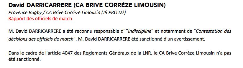 C'était un domaine où Brive n'était pas très présent mais qui l'était les saisons précédentes. La commission de discipline n'avait pas encore vu passé un dossier avec le logo du CAB. A la suite du match à Provence, les premiers dossiers de la saison sont arrivés tout comme les premières sanctions.