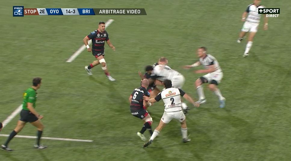 A Oyonnax, le match n'avait déjà pas très bien commencé avec deux essais encaissés rapidement. Certes, il y a eu une pénalité pour Curwin Bosch mais le score commence déjà à être lourd avec 14-3 pour les locaux. Et à la 20e minute, cela s'empire encore un peu plus pour le CAB. Tevita Ratuva écope d'un carton rouge pour un plaquage dangereux sur Loïc Godener. Si du côté du staff briviste, on estime que la sanction est sévère, la sanction est bien là et Brive va devoir évoluer à 14 pendant une heure.