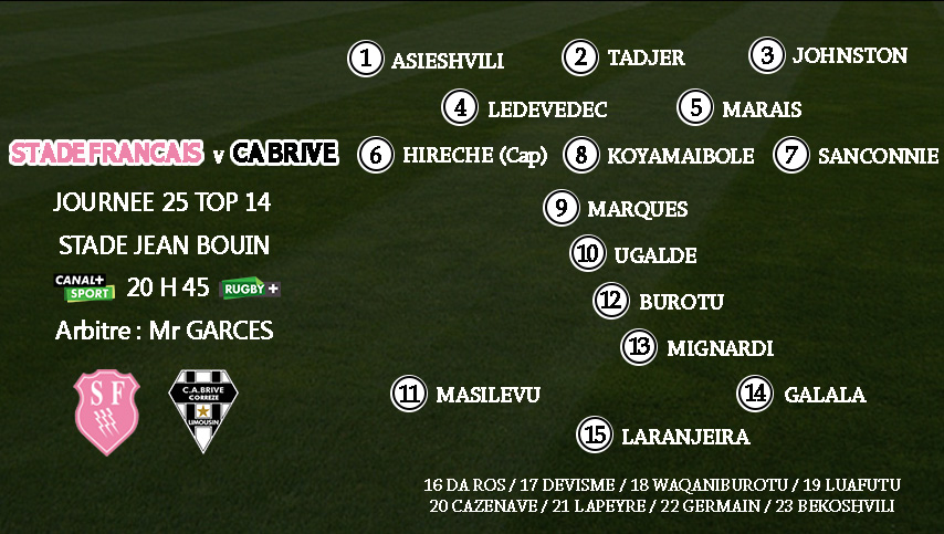 Voici le XV de départ du CA Brive pour le déplacement au Stade Français :