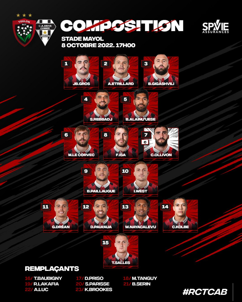 Voici le XV de départ de Toulon pour la réception de Brive :