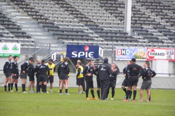 Le brouillard ne s'est pas levé de la journée et les températures sont fraîches au moment où l'équipe mixte du CAB commence son entrainement. En raison de la mise au repos de certains cadres, les entraineurs ont décidé de piocher chez les Espoirs pour ce bloc européen. Ce renforcement entraine une cascade chez les équipes de jeunes car tout le monde est sur le pont ce week-end. Les Espoirs se déplacent à Pau, un mal classé, avec donc un groupe amoindri par les blessures et les absences de certains de ses joueurs majeurs. Ceux qui seront du déplacement en Roumanie auront l'occasion de montrer leurs valeurs aux entraineurs dans l'optique des années futures qui, on l'espère, seront brillantes et radieuses pour le CAB.