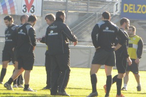 Il ne faisait pas bien chaud ce matin à Brive malgré un beau soleil qui avait le bonheur de réchauffer cet environnement hivernal. La pelouse était par endroits blanche (du côté de la grande tribune et de la tribune Sud) mais c'est normal, ces endroits n'avaient pas encore vu le soleil de la matinée. Demain soir, au moment du coup d'envoi, il risque faire bien frais et pour ceux qui envisagent de venir voir le match, il va falloir bien se couvrir sous peine de passer Noël au fond du lit !!!.