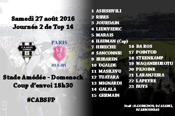 Voici le XV de départ du CA Brive pour la réception du Stade Français :