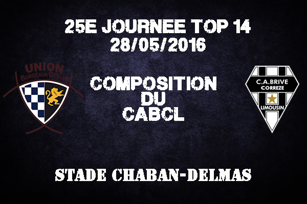 Voici le XV de départ du CA Brive pour le déplacement à Bordeaux :