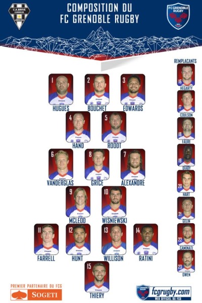 Voici le XV de départ de Grenoble pour le déplacement à Brive :