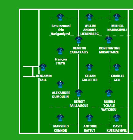 Remplaçants : 16- Van Wyk 17- Watremez 18- Van Rensburg 19- Qera 20- Wright 21- Botica 22- Immelman 23- Du Plessis