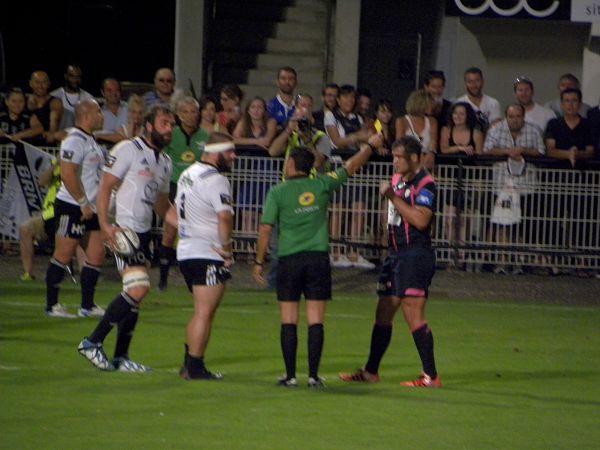 Le début de match a été heurté entre les deux équipes. Nous sommes à la demi-heure de jeu et Paris se trouve dans les 22 brivistes. A la suite d'un regroupement, on s'explique entre Sempéré et Jgenti. Le capitaine parisien chauffe le briviste en lui adressant une gifle sur la tête. Malheureusement, le géorgien a le tort de répondre à la provocation et se fait prendre par la patrouille. Le carton est logique mais il aurait été bien que le talonneur parisien l'accompagne sur le banc des pénalités.