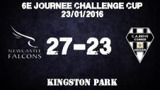 Après sûrement une belle soufflante dans les vestiaires, les brivistes rentrent avec de meilleures intentions sur le terrain (difficile de faire pire de toute façon). Chris Tuatara casse à nouveau la ligne défensive et s'échappe. Nicolas Bezy profite de l'offrande pour inscrire l'essai de l'honneur (22-10, 42'). Mais à mesure que Brive sort de sa sieste, Newcastle (ainsi que son public) rentre dans la sienne. Le CAB en profite pour recoller petit à petit au score. Impressionnant il y a une semaine, Laranjeira continue sur sa lancée. Le centre passe une première pénalité qui permet à son équipe de passe sous la barre des 10 points (22-13, 50'). Le banc apporte du sang neuf et Brive commence à y croire surtout que Laranjeira passe une nouvelle pénalité juste avant l'heure de jeu (22-16, 59'). Les brivistes sont installés dans le camp des Falcons qui semblent désormais sans solutions et sans énergie. A force de pousser, Brive va être récompensé après revenu du diable vauvert. Les brivistes combinent bien derrière une mêlée à 5 mètres et Poutasi Luafutu marque en coin. Du bord de touche, Laranjeira ne tremble pas et fait passer les siens devant au score pour la première fois de la partie (22-23, 70'). Quelle remontée spectaculaire de Brive ! Mais cette série a pour effet de réveiller Newcastle et ses supporters. Et le faucon va fondre mortellement sur sa proie. Le rapace s'appelle Simon Hammersley. Déjà auteur du premier essai, l'arrière anglais va réaliser un petit exploit et effacer toute la défense pour aplatir en coin (27-23, 75'). Avec cette performance individuelle, Newcastle empoche le bonus offensif. Après ce nouveau coup derrière la tête, le CAB va tenter d'effectuer un dernier et ultime retour mais les Falcons ne se font pas surprendre une 2e fois et assurent une dernière victoire dans cette Challenge Cup.