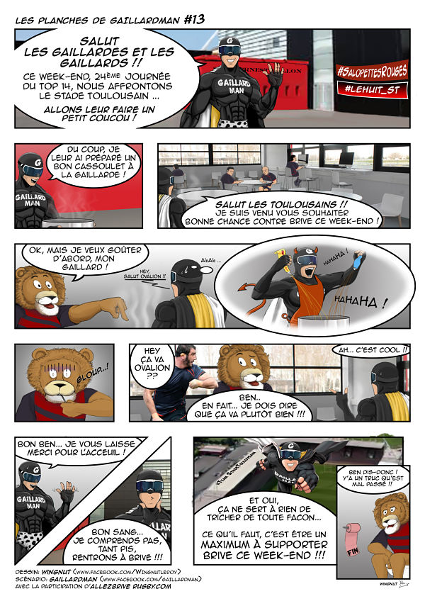 Désormais, il n'y a plus de trêve, ce sera Top 14 jusqu'à la fin. A trois journées de la fin, la lutte est intense que ce soit en haut ou en bas du classement. Brive a besoin de ramener des points de l'extérieur pour croire au maintien. Le club briviste peut compter sur Gaillard Man. Le super-héros corrézien a plus d'un tour dans son sac.