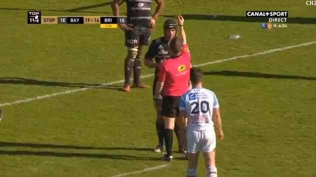 2e carton jaune pour Brive en quelques minutes. Bayonne va en profiter grandement