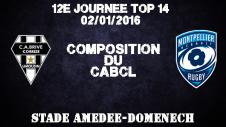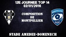 Voici la composition des deux équipes pour le match CA Brive - Montpellier (coup d'envoi à 20h45, arbitre : Mr Pascal Gauzere)