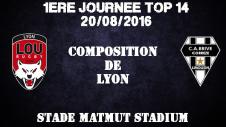 Voici la composition des deux équipes pour le match LOU Rugby - CA Brive (coup d'envoi à 20h45, arbitre : Mr Thomas Charabas)